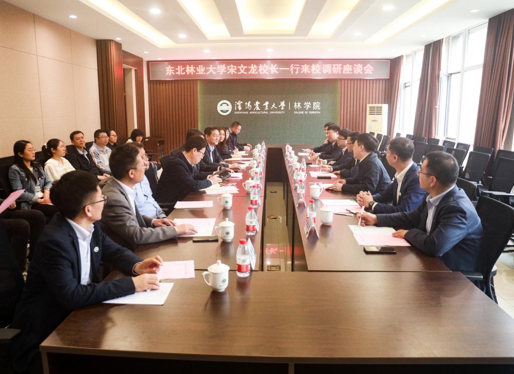 4月24日,东北林业大学校长宋文龙、副校长于海鹏一行来访我校,围绕科研管理、团队建设、校际合作等进行调研交流。校党委副书记、副校长李斌,副校长王铁良出席座谈会并陪同调研。