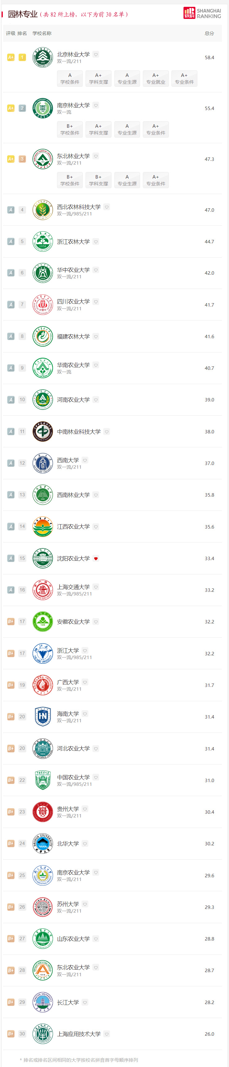 近日,软科发布2022年“中国大学专业排名”,华体会足球_华体会(中国)官网园林专业排名15(前9%)上升1位,评级保持A;风景园林专业排名50(前23%)评级B;林学专业排名17(前35%)评级B。