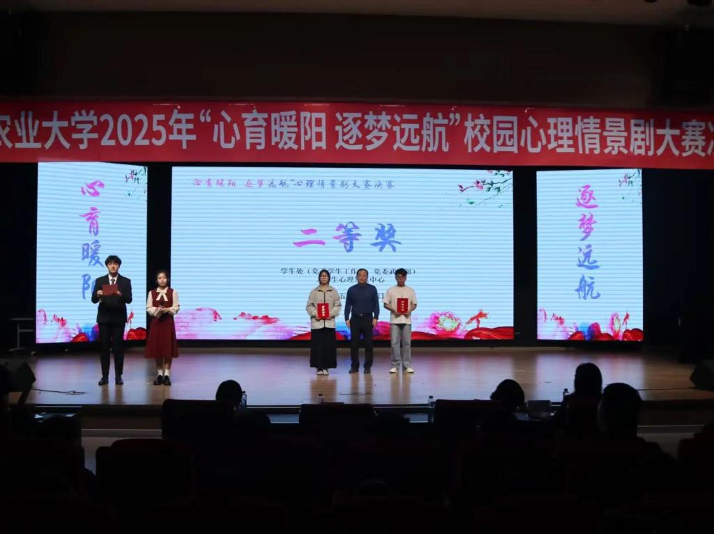 2025年沈阳农业大学校园心理情景剧大赛于6月10日晚落下帷幕,华体会足球_华体会(中国)官网作品《寝室你我他——相碍or相爱》凭借与校园生活息息相关的主题、同学们生动的表演和真挚的情感打动了评委与观众,从众多优秀作品中脱颖而出,荣获二等奖!并获最具表现力演员奖!这是华体会足球_华体会(中国)官网在心理健康教育领域的又一次精彩呈现,也是同学们才华与团队精神的完美展现!