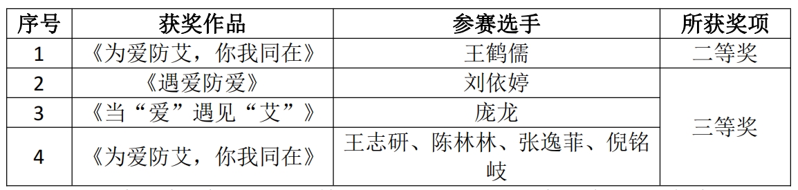学院以大赛为契机,以赛促教、以赛促学,提升学生审美及设计能力;同时继续加强防控艾滋病的宣传与教育。(文稿/任亚敏 审核/杨宇)