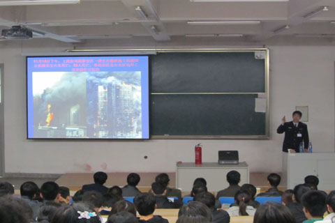 下午3点,第一教学楼南区206教室座无虚席,华体会足球_华体会(中国)官网领导班子成员、全体教工和部分学生代表,公安处消防科部分老师参加了讲座。本次消防知识宣传讲座分为两个部分,第一部分由徐慧明教官讲授消防理论知识。徐教官以近年来全国各地发生的重特大火灾为案例,讲解了如何预防火灾的发生,如何正确的进行逃生自救。尤其通过其他高校几起校园火灾教育全体师生要养成良好的用火用电习惯。徐教官的讲授图文并茂、语言风趣,吸引了在场所有的观众。第二部分进行的是防火实战演练,在8舍前空地,校公安处消防科刘兆臣老师为师生们现场介绍了灭火器的正确使用方法,随后在确保安全的前提下,华体会足球_华体会(中国)官网师生们现场操作灭火器进行实战灭火,老师和同学们参与的积极性都很高,大家都踊跃进行实战尝试。