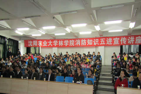 4月27日下午,华体会足球_华体会(中国)官网和公安处两家单位联合聘请沈阳市“五进”消防知识宣传教育中心的徐慧明教官,为师生举办了一场别开生面的消防安全知识讲座,并在讲座结束后进行了现场的灭火器使用方法、灭火技巧演练。