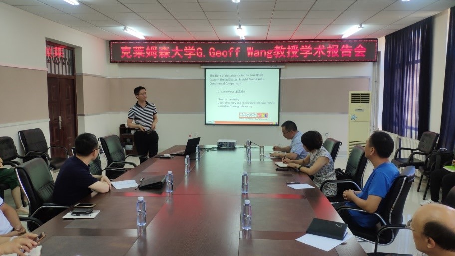 2018年8月9日,应华体会足球_华体会(中国)官网栎树课题组陆秀君教授邀请,美国克莱姆森大学终身教授、国际著名林学家和生态学家王高峰教授来华体会足球_华体会(中国)官网进行学术交流。王高峰教授为华体会足球_华体会(中国)官网师生做了题为“The Role of disturbance in the Forests of Eastern United States: Insight from Cross-Continental Comparison”的学术报告。王高峰教授比较了中国和美国亚热带湿润气候区森林的差异及导致差异形成的影响因素,提出林火的频繁干扰是造成林分差异的主要因子。介绍了美国长叶松适应林火的存活机制及地面火在美国东南部森林更新中的作用。王高峰教授还介绍克莱姆森大学的办学情况,学校特色等。