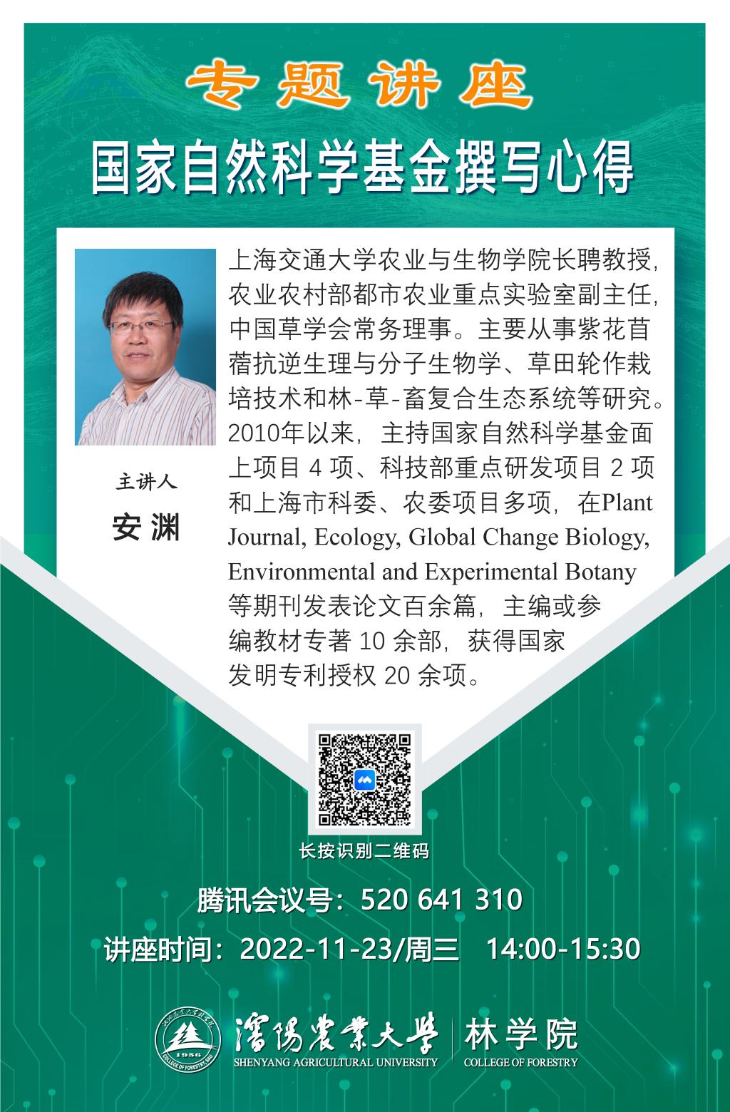 2022年11月23日14:00,上海交通大学 安渊 教授,国家自然基金专题讲座! 欢迎广大师生参加!
