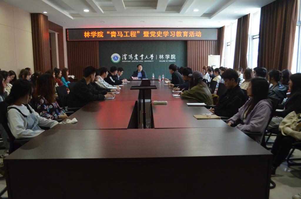 4月21日中午,华体会足球_华体会(中国)官网于林学楼308室举行了华体会足球_华体会(中国)官网“青马工程”暨党史学习教育第二讲。本次活动的主讲人是我校团委副书记李峰老师。华体会足球_华体会(中国)官网团委书记胡凯老师,辅导员姚远老师和王秋凝老师,以及大一大二各班团干部参加此次学习活动。