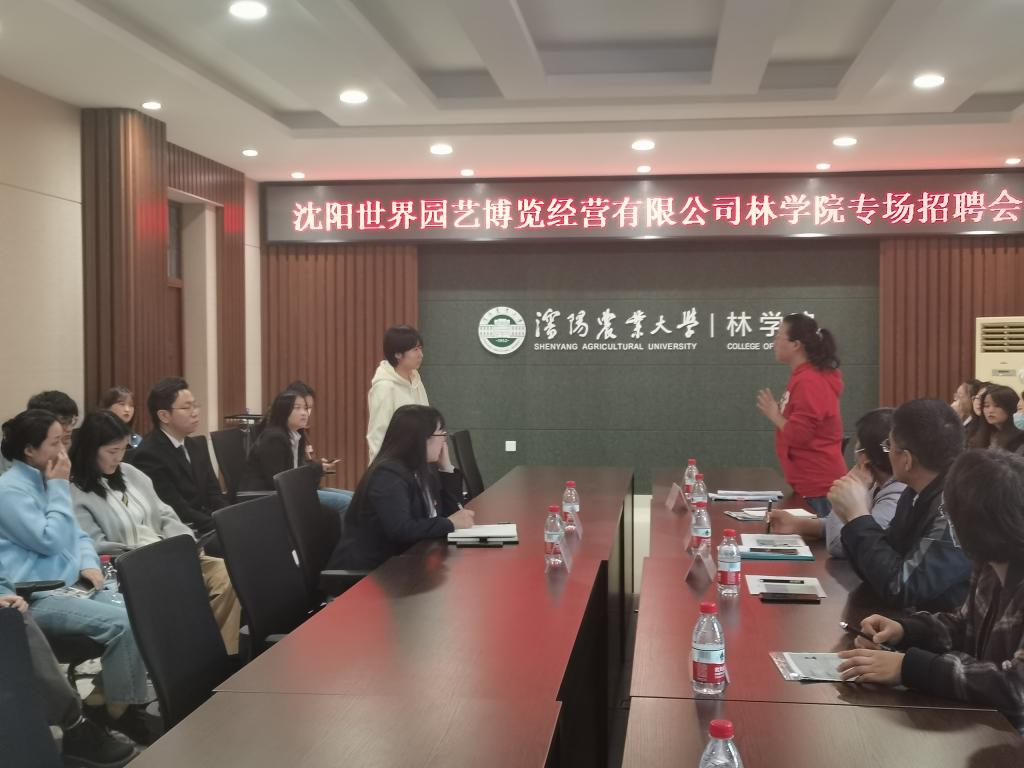 3月30日下午,沈阳世界园艺博览经营有限公司华体会足球_华体会(中国)官网专场招聘会在学院308室召开。会议邀请了沈阳世界园艺博览经营有限公司总工程师王文元、办公室主任等一行7人,林学院党委副书记杜杰老师、学生辅导员出席会议,40余名研究生、本科生参加招聘会。