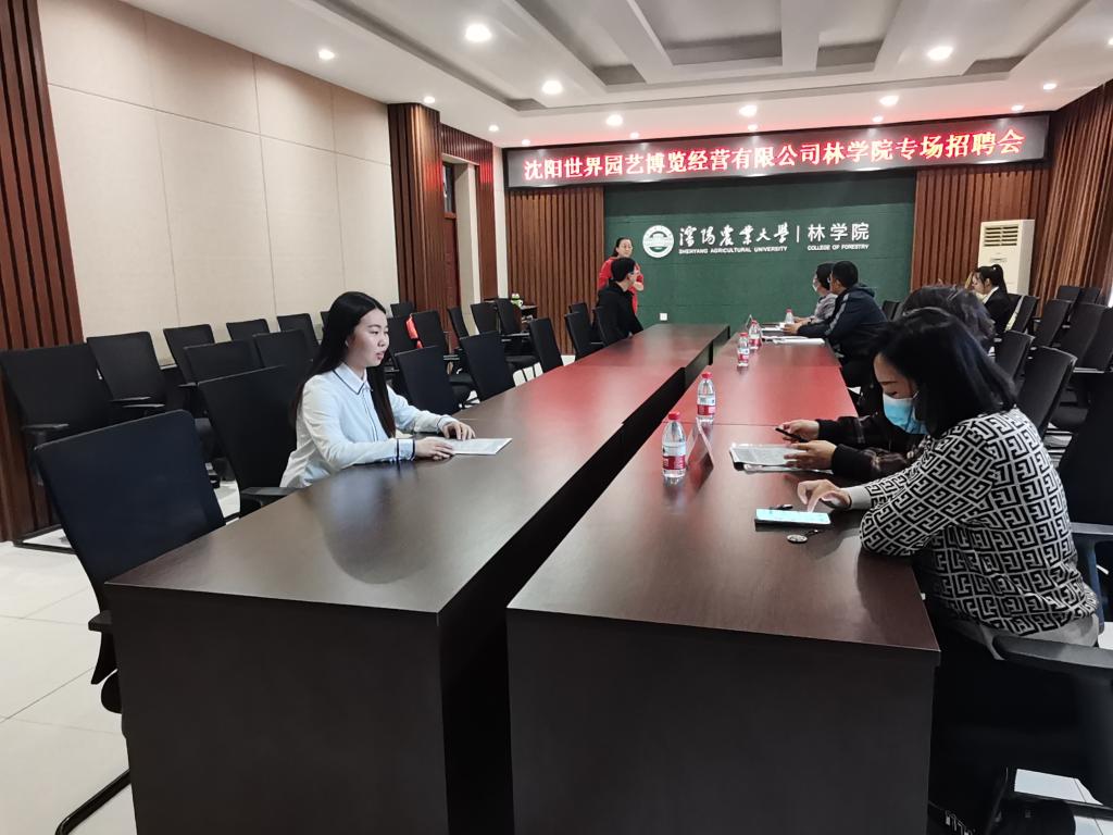 会上,沈阳世界园艺博览经营有限公司代表介绍了公司的基本情况、发展前景、招聘情况并回答了同学们关注的岗位要求、工作环境,薪资福利等问题。随后,同学们投递简历,公司进行了现场面试。