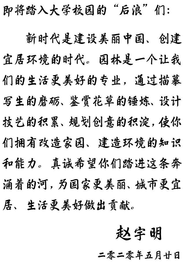赵宇明,沈阳农业大学园林专业1995届本科、1998届硕士毕业生,沈阳风景园林股份有限公司董事长、总经理,全国园林绿化优秀企业家、辽宁省“科技兴辽人才”、沈阳市“五一劳动奖章”获得者,沈阳市和平区政协委员。